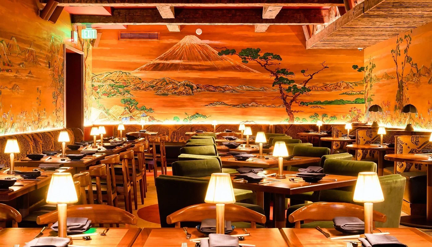 Style & Atmosphere: Japanese contemporary, mood lighting, stylish crowd